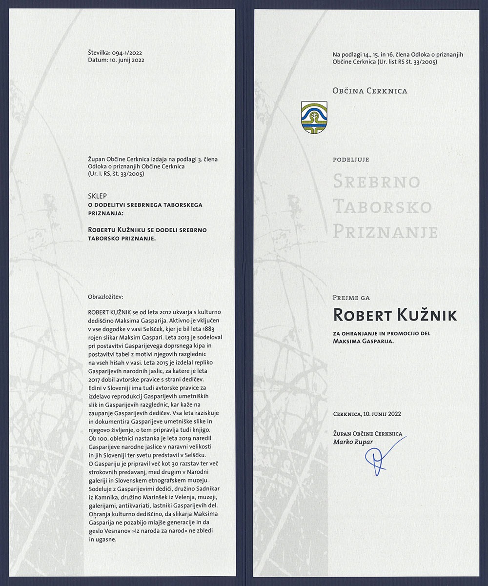 Spoštovani gospod Robert, Najlepša hvala za podarjeno knjigo, ki ste jo napisali in izdali v samozaložbi. Že, ko jo dobiš v roke, vidiš do potankosti izdelano zunanjost. Prvi stik s knjigo ti pove, da je knjiga nadstandardna, mogočna, impresivna. Tekst in slike so ravno v pravem sorazmerju, kar jo dela še bolj privlačno. Natisnjena je na izvrsten papir, ki omogoča večjo kvaliteto slik. Kot jaslice in knjiga so tudi vse druge umetnine, ki jih daš iz rok, vrhunske stvaritve. Meni je v čast, da sem lahko sodeloval pri tem.